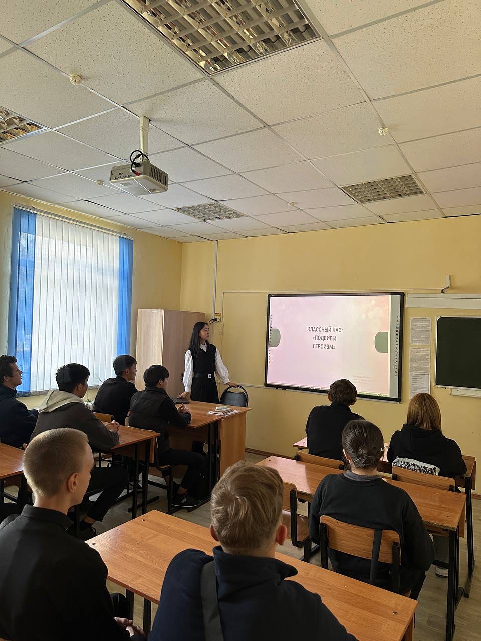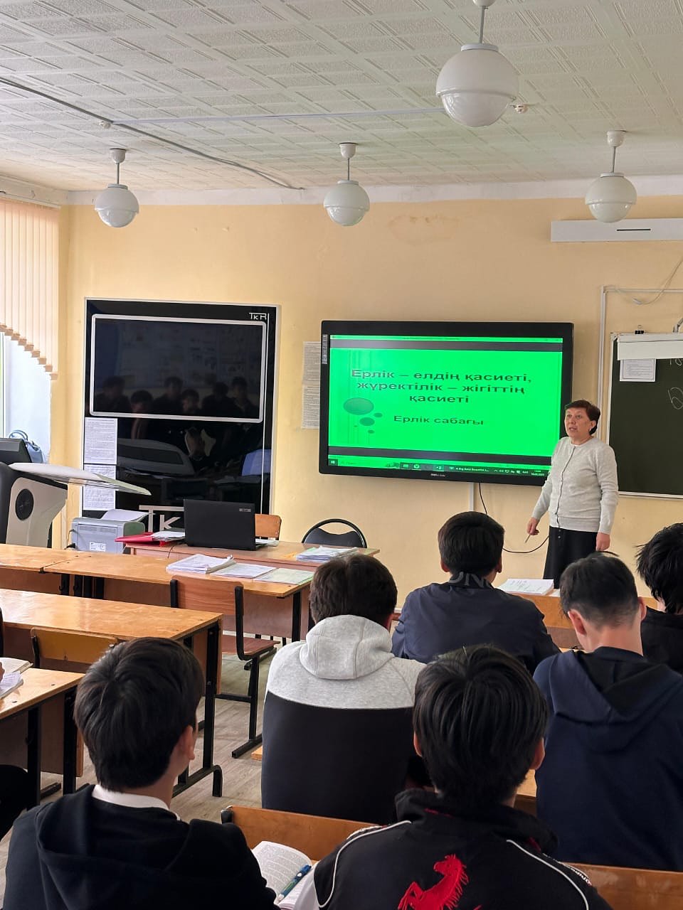 “Ерлік -елдің қасиеті жүректілік-жігіттің қасиетті”тақырыбында Орал политехникалық колледжі студенттеріне «Ерлік сағаты»өткізілді.Студенттерді отан сүйгіштікке,патриотизмге тәрбиелеу. Тарихи тұлғалардың жасаған ерліктерін ұмытпай есте сақтап,мақтан тұта отырып іздерін жалғауға баулу.